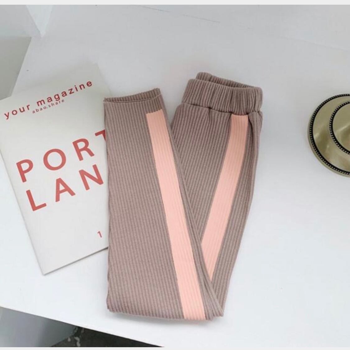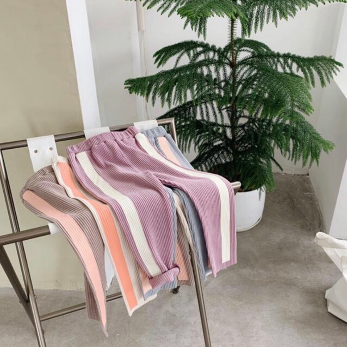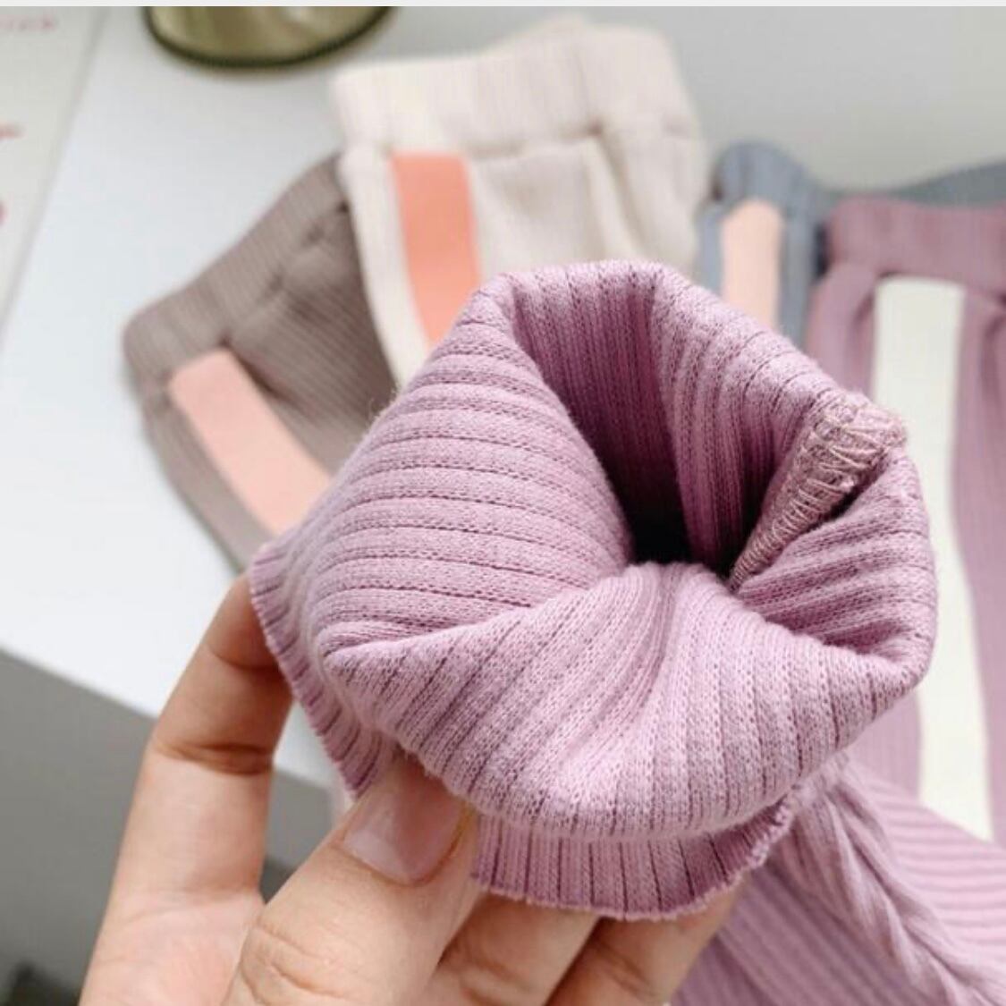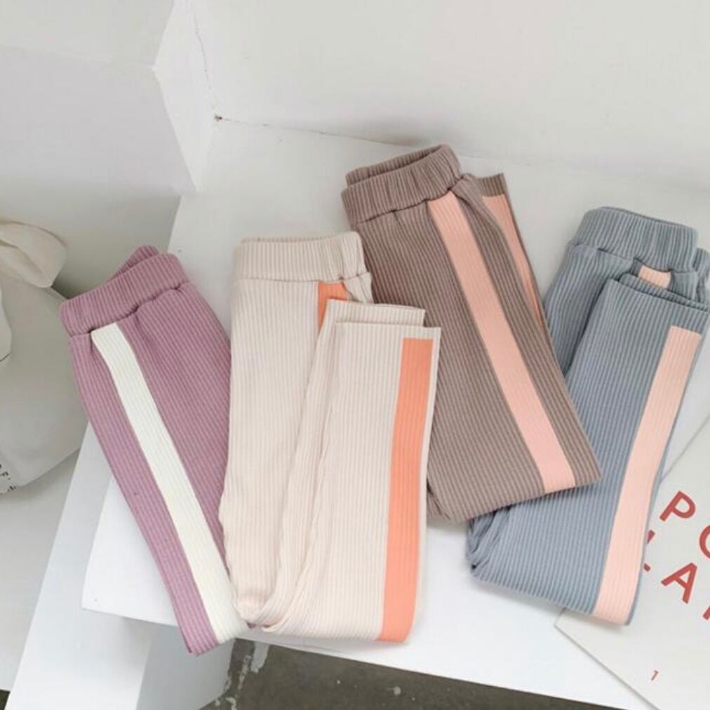 くすみパステルの配色が可愛いリブパンツ♡